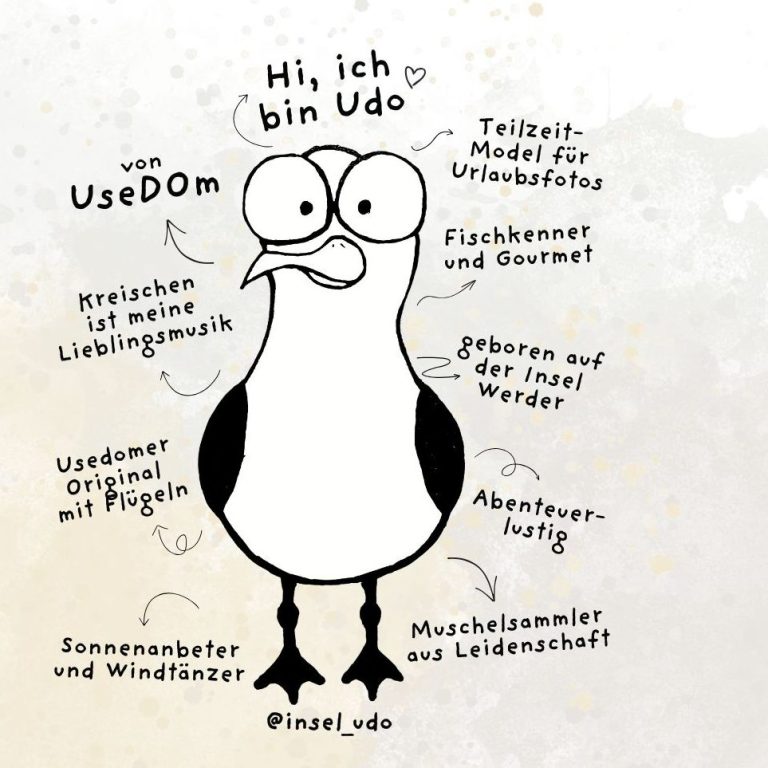 Ich bin einzigartig, ein bisschen besonders – und vielleicht auch ein bisschen außergewöhnlich. Mein Name ist Udo und ich bin eine Möwe von der Ostseeinsel Usedom.